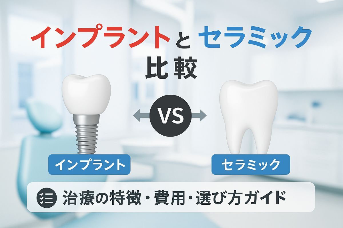 2025/08/18歯の治療を検討する際、「インプラントとセラミックの違いがよくわからない」「費用や見た目、耐久性はどう違うの?」と悩んでいませんか?特に、「どちらを選... -