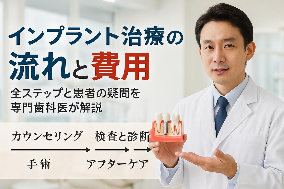 2025/09/18「インプラント治療の流れを知りたいけれど、痛みや費用、治療期間がどれくらいかかるのか不安…」そんな悩みをお持ちではありませんか? 実際、日本国内では年... -